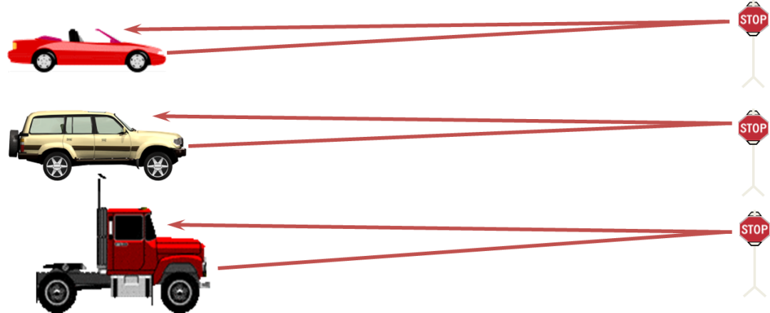 举几个常见的例子,驾驶不同的车型,观察同一标志时,观察角就有可能不同,驾驶大型车辆时的观察角明显大于驾驶小型车辆的观察角,如下图3所示:
