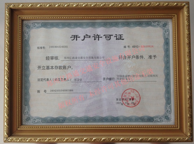 当前位置: 首页 > 荣誉资质>柘城亿路通开户许可证